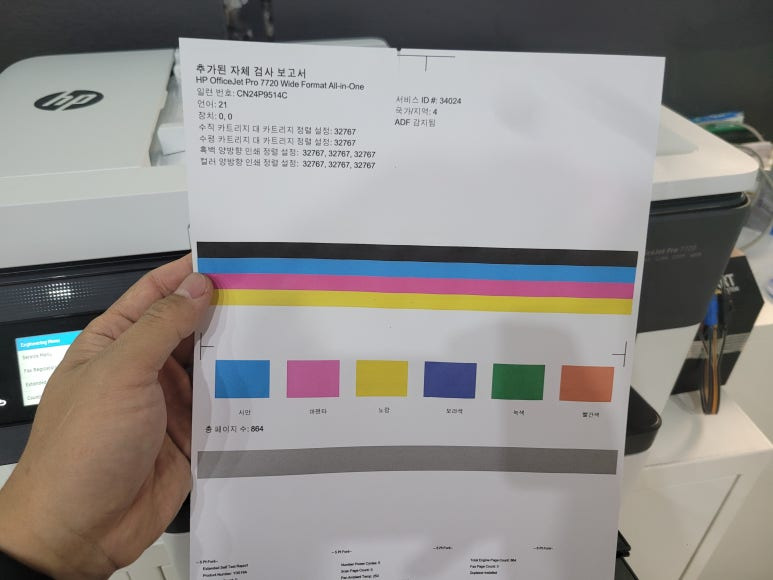 HP OfficeJet Pro 7720 팩스복합기 작업 내용은 아래와 같습니다.