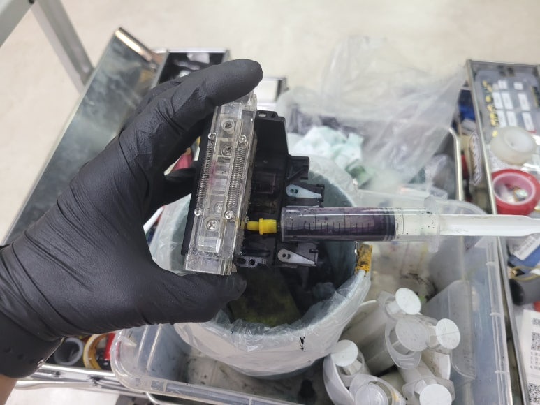 ● 프린터 헤드 강세정액 주입 노즐 세척