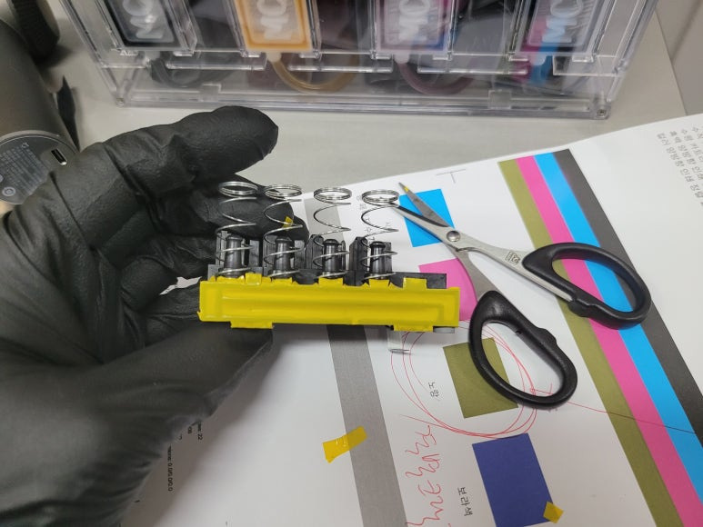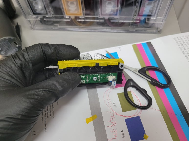 ● 프린터 헤드 챔버 터짐 탄성접착제 도포 및 테이핑