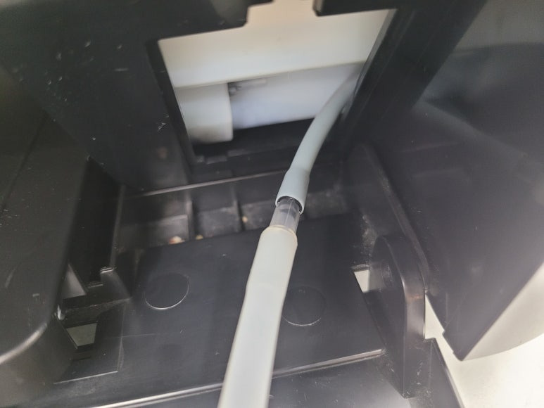 경기도 남양주시 다산 현대프리미엄아울렛 소재, 매장에서 스캔, 복사, 문서 출력용으로 사용하는 엡손 L805 6색 복합기 프린터인데 출력상태 불량으로 출장수리 요청하여 스케줄 잡아 이동, 출장수리 완료했습니다.