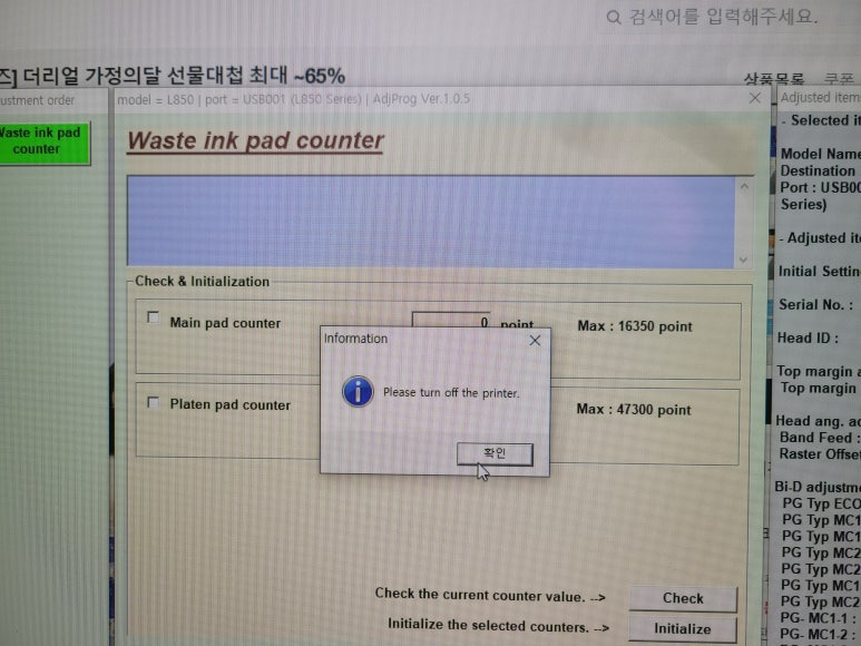 EPSON 엡손 L805 무한잉크 6색 복합기 작업내용은 아래와 같습니다.