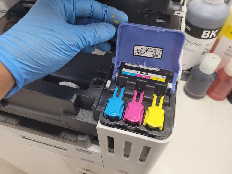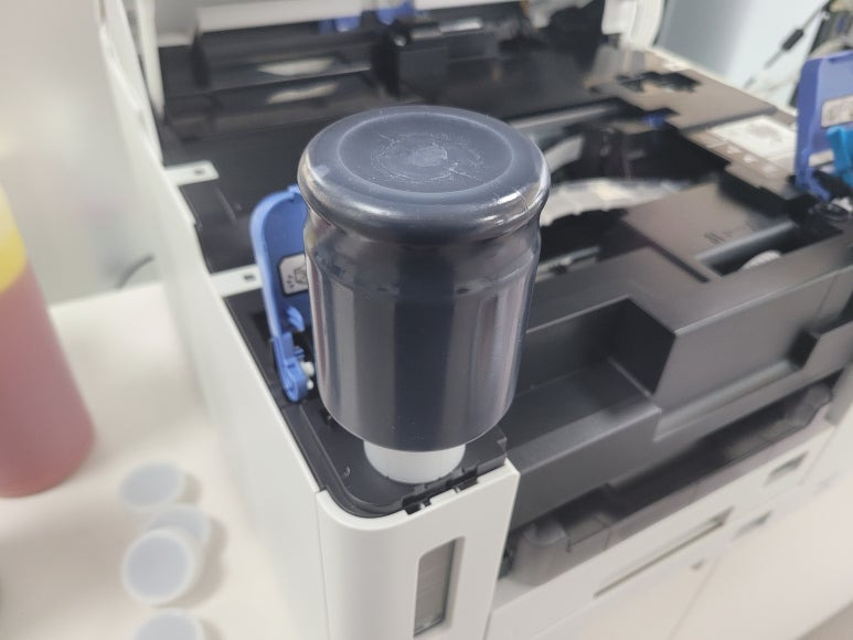 HP 8210 프린터 무한잉크의 잦은 고장과 오염으로 용지걸림 현상 및 캐리지 걸림 등등 문제가 발생되어 대체 프린터로 교체가 필요하여 캐논 GX5590 프린터로 교체 출장설치 완료했습니다.