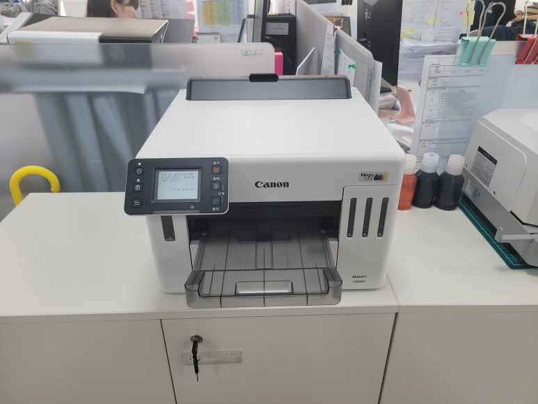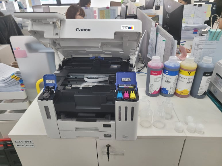 최근 사설 HP 개조 무한잉크에 비해 내구성이 2~3배 강하고, 관리도 편하고, 호환잉크 1리터 보충도 가능하여 학교 학원 어린이집 보험사 부동산 약국 등등 핫하게 뜨는 캐논 GX5590 무한잉크 입니다.