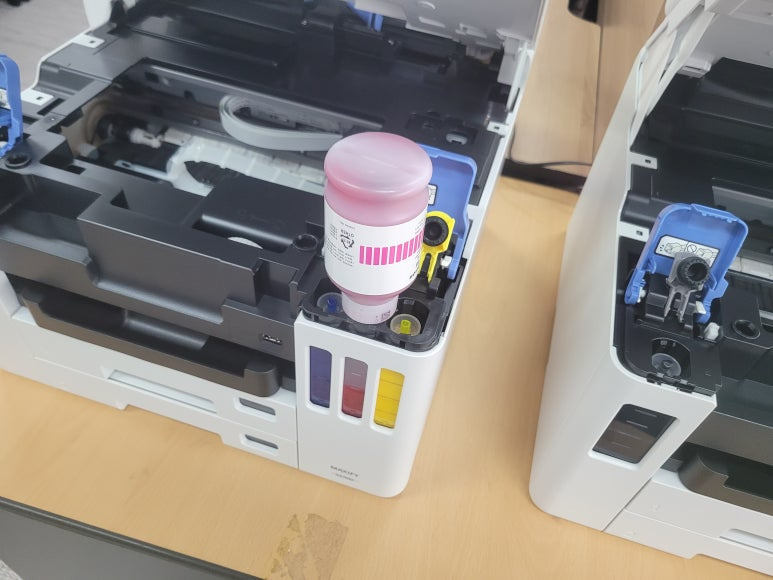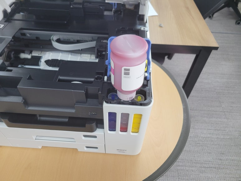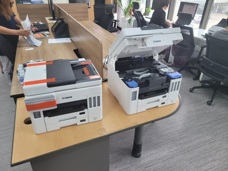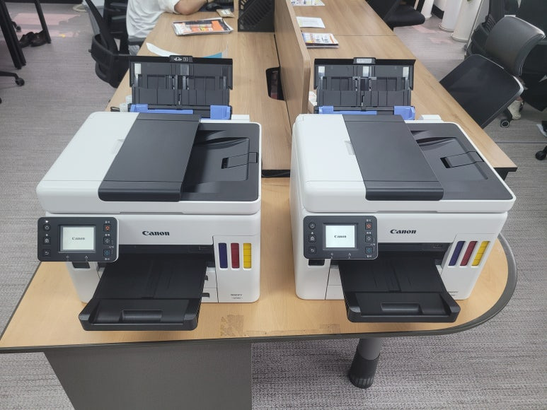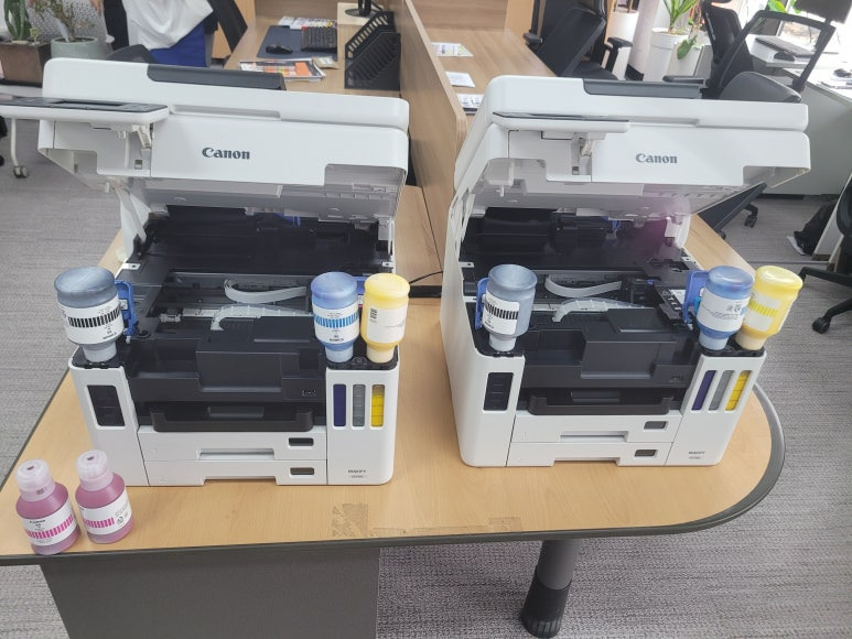 최근 사설 HP 개조 무한잉크에 비해 내구성이 2~3배 강하고, 관리도 편하고, 호환잉크 1리터 보충도 가능하여 학교 학원 어린이집 보험사 부동산 약국 등등 핫하게 뜨는 캐논 GX시리즈 무한잉크 입니다.