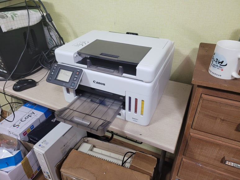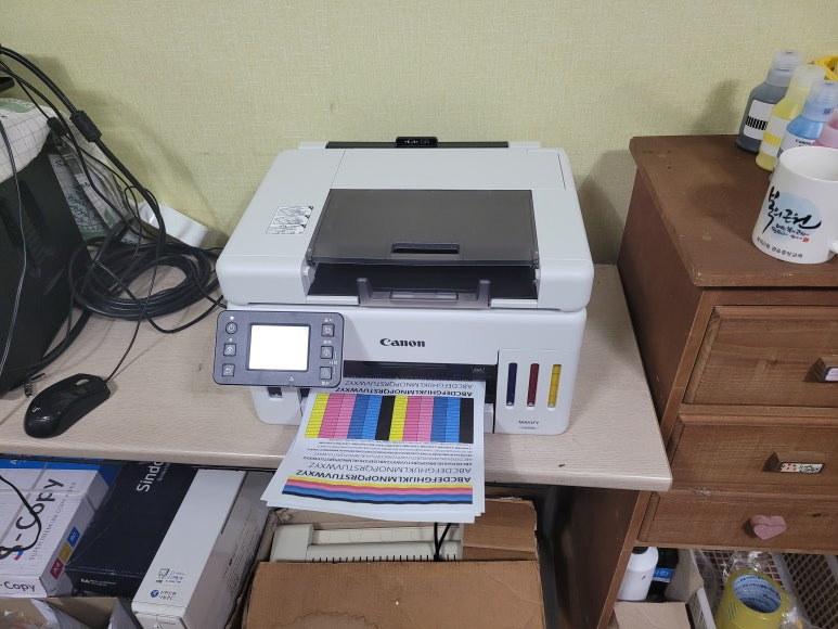 최근 사설 HP 개조 무한잉크에 비해 내구성이 2~3배 강하고, 관리도 편하고, 호환잉크 1리터 보충도 가능하여 학교 학원 어린이집 보험사 부동산 약국 등등 핫하게 뜨는 캐논 GX6590 무한잉크 입니다.
