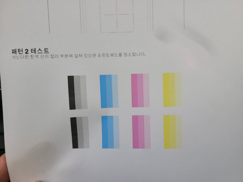 ⚠ 이상 시에만, 액정에서 설정 ➡ 유지 및 보수 ➡ 헤드청소 3단계 1회만 진행 (개선없다면 수리요청)