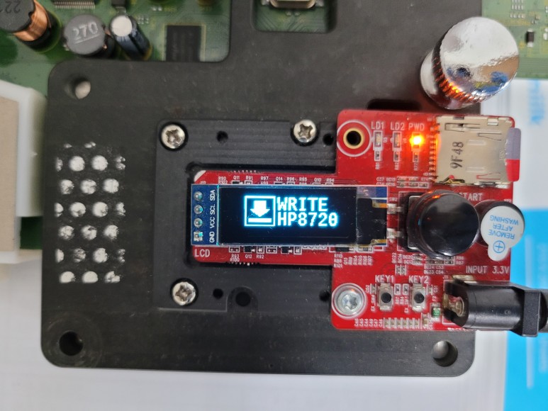 좌측 커버를 개방하고 메인보드를 땐 후에 Chipless Solution(No Chip)펌 라이팅을 위해 지그에 물렸습니다.
