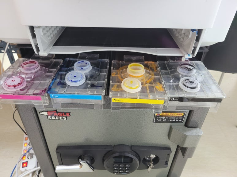 cf. 잦은 헤드 청소는 잉크손실, 내부오염, 헤드 노후화 및 칩판부 슈팅에어라인 비닐탈락, 챔버**터짐, 노즐 훼손, 헤드 챔버 내부 크랙 등 영향을 줍니다. 꾸준한 주기적인 4색 출력 관리가 필요합니다. 열분사 방식으로 잉크가 빠진 상태에서 사용시 헤드 노즐이 타서 망가질 수 있으니 사용자재 바랍니다.