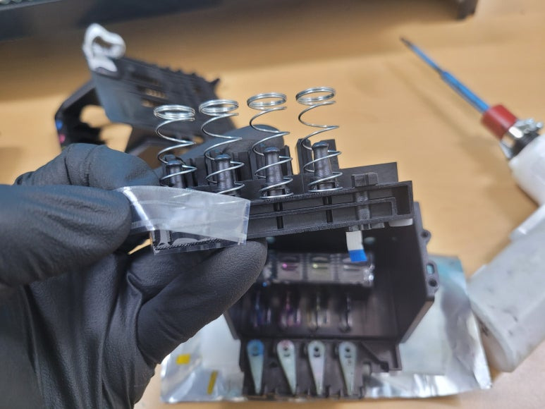● 프린터 헤드 챔버 터짐 탄성접착제 도포 및 테이핑