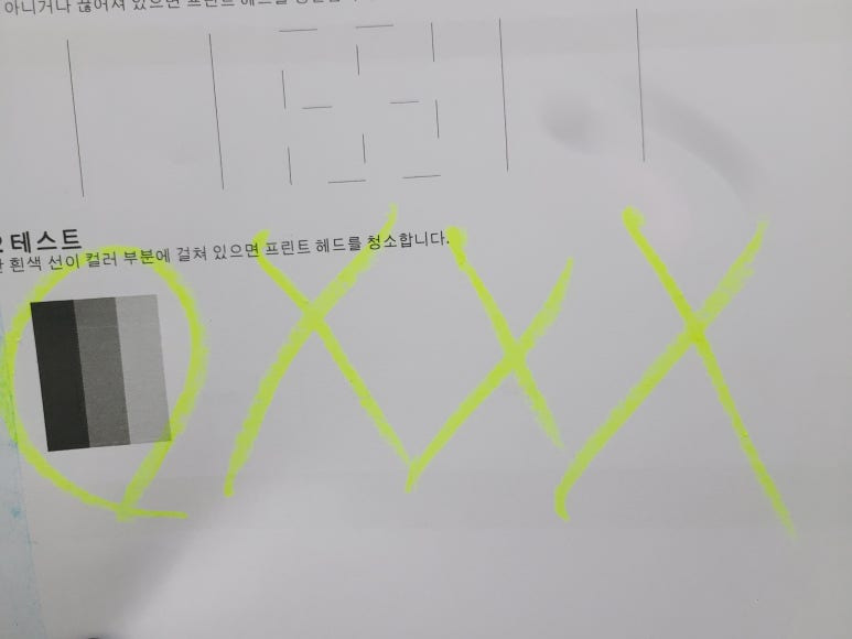 2) 매일 체크하지 않으면 노즐이 미세하게 막히면 헤드 청소를 해야 하는데 헤드청소시 이때, 잉크가 정말 많이 사용됩니다. 잉크 낭비까지 생각한다면 평소 출력해 체킹하는 게 좋습니다.(고지혈/동맥경화시 의료비가 듭니다)