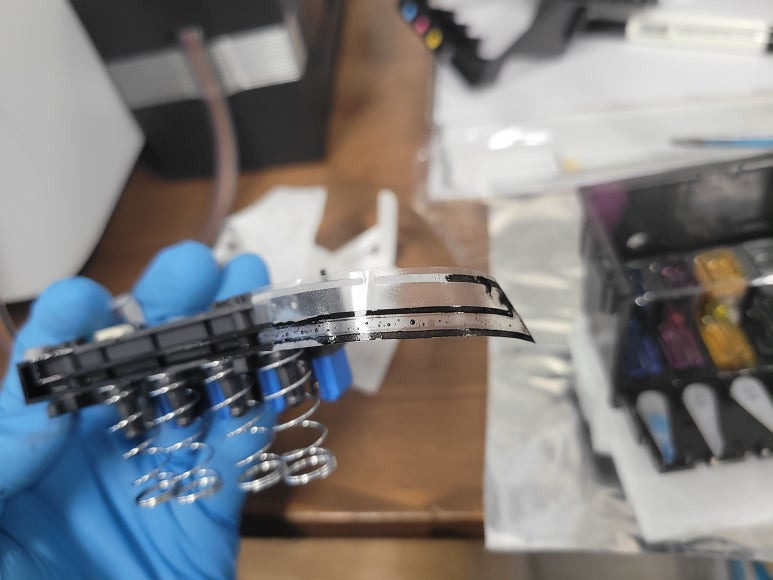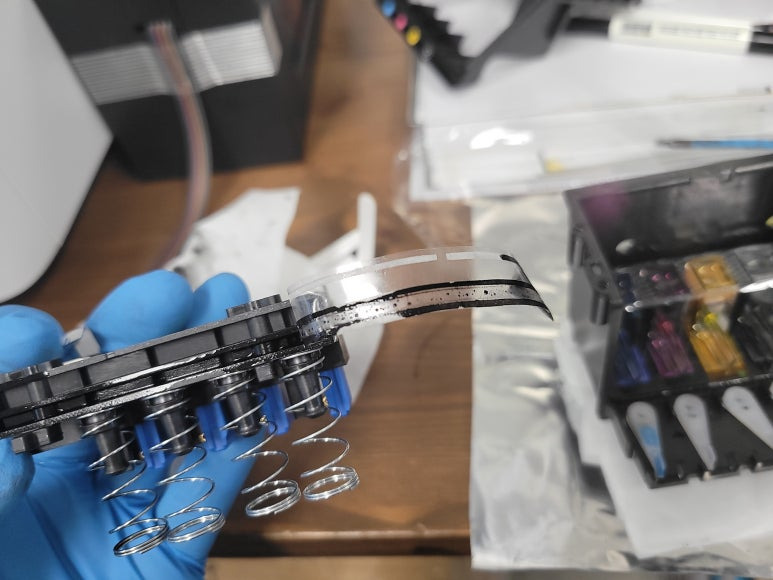 잦은 헤드 청소는 잉크손실, 내부오염, 헤드 노후화 및 칩판부 슈팅에어라인 비닐탈락, 챔버 터짐, 챔버 격벽 크랙 혼색, 노즐 훼손 등 영향을 줍니다. 헤드 격벽 크랙은 헤드 청소가 없더라고 사용중 충분히 생길 수 있는 부분이지만 잦은 헤드 청소는 더욱 빠른 노후 및 캠버 격벽 크랙을 가져 옵니다.
