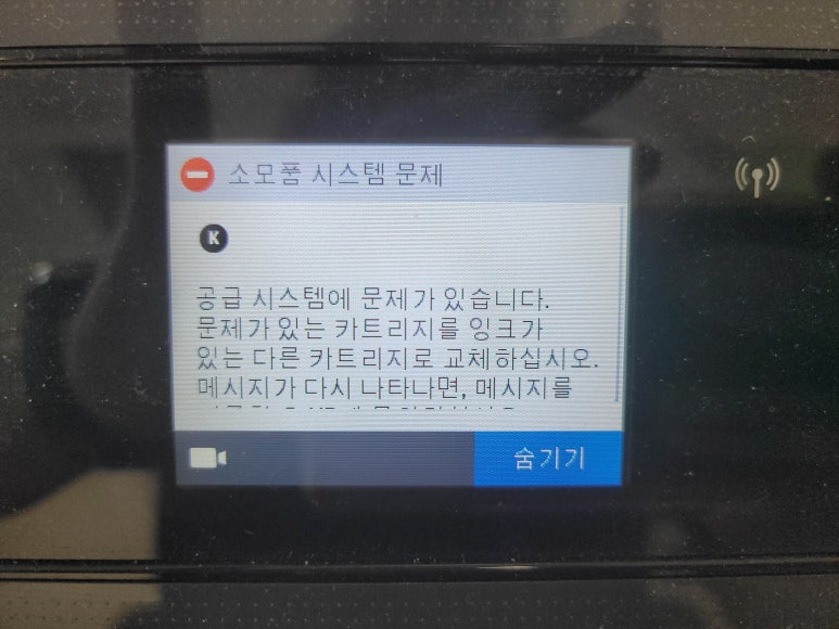 HP OfficeJet Pro 7740 팩스복합기 무한잉크 장치는 소모품 시스템 문제 및 공급 시스템 문제는 전면 커버를 열었다 닫았다 3회 진행하면 카트리지 확인 후 정상 작동됩니다.