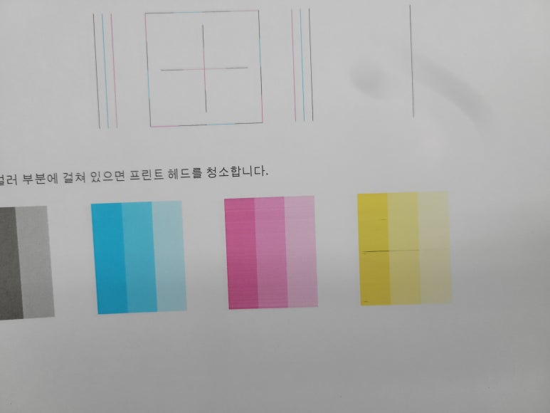 ⚠ 이상 시에만, 액정에서 설정 ➡ 유지 및 보수 ➡ 헤드청소 3단계 1회만 진행 (개선없다면 수리요청)