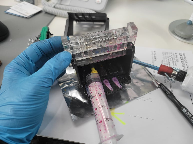 ● 프린터 헤드 강세정액 주입 노즐 세척