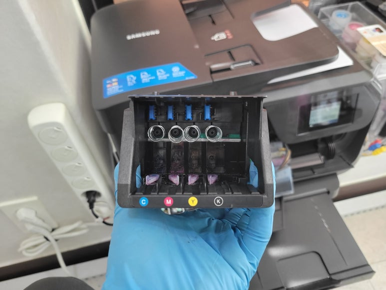 cf. 잦은 헤드 청소는 잉크손실, 내부오염, 헤드 노후화 및 칩판부 슈팅에어라인 비닐탈락, 챔버**터짐, 노즐 훼손, 헤드 챔버 내부 크랙 등 영향을 줍니다. 꾸준한 주기적인 4색 출력 관리가 필요합니다. 열분사 방식으로 잉크가 빠진 상태에서 사용시 헤드 노즐이 타서 망가질 수 있으니 사용자재 바랍니다.