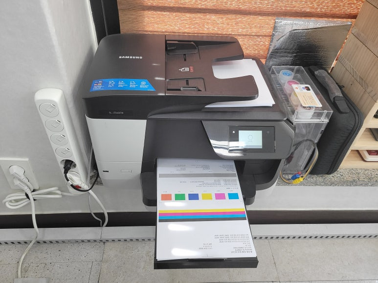 서울시 서초구 소재, 사무실에서 스캔, 복사, 팩스 및 문서출력용으로 사용중인 삼성 SL-J3560FW 무한잉크 팩스복합기인데 출력불량 문제로 출장수리 요청하여 스케줄 잡아 이동, 출장수리 완료했습니다.