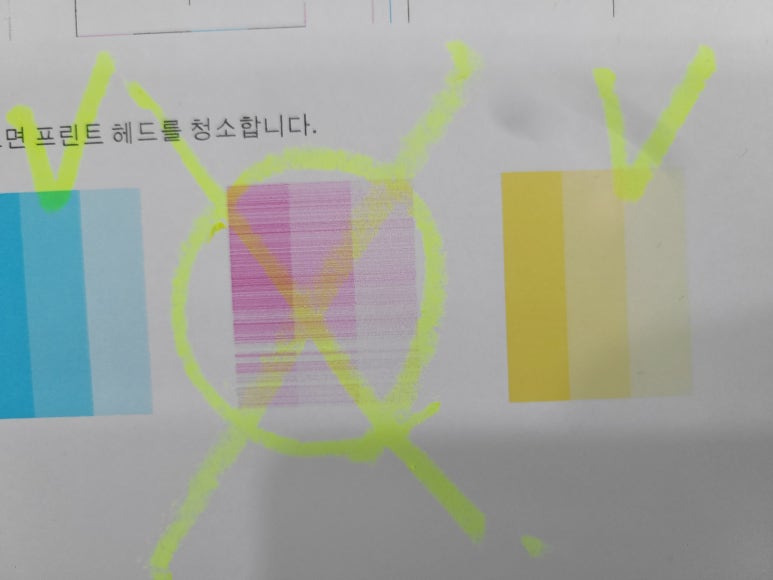2) 매일 체크하지 않으면 노즐이 미세하게 막히면 헤드 청소를 해야 하는데 헤드청소시 이때, 잉크가 정말 많이 사용됩니다. 잉크 낭비까지 생각한다면 평소 출력해 체킹하는 게 좋습니다.(고지혈/동맥경화시 의료비가 듭니다)