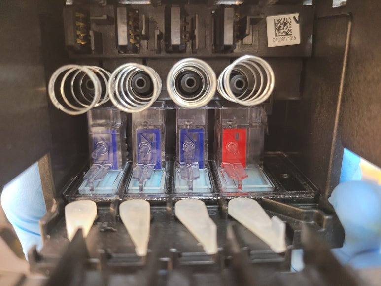 cf. 잦은 헤드 청소는 잉크손실, 내부오염, 헤드 노후화 및 칩판부 슈팅에어라인 비닐탈락, 챔버**터짐, 노즐 훼손, 헤드 챔버 내부 크랙 등 영향을 줍니다. 꾸준한 주기적인 4색 출력 관리가 필요합니다. 열분사 방식으로 잉크가 빠진 상태에서 사용시 헤드 노즐이 타서 망가질 수 있으니 사용자재 바랍니다