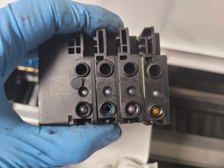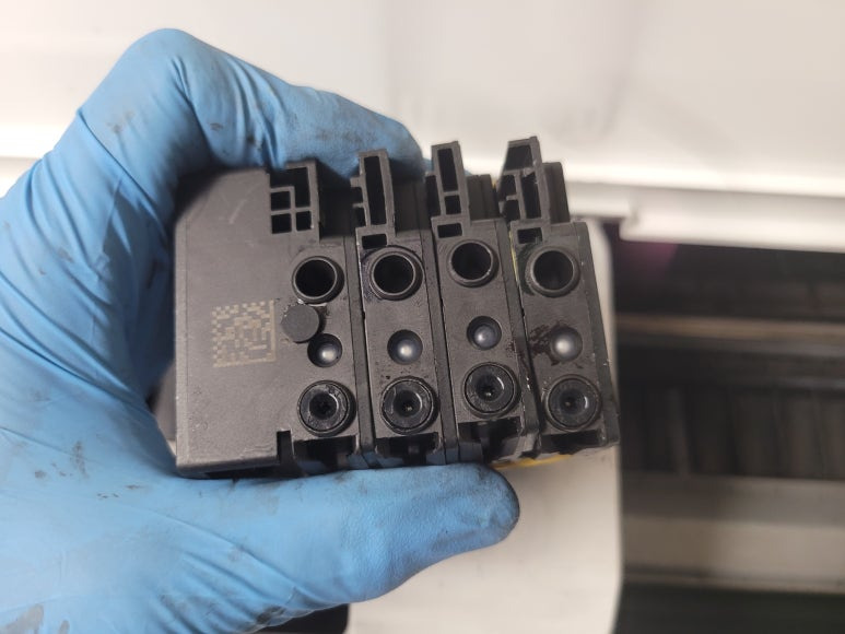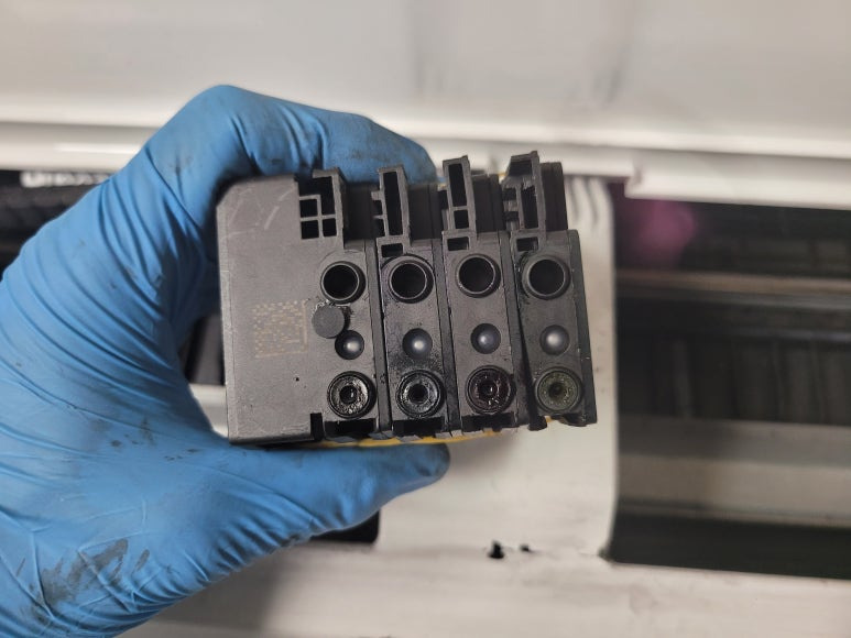 잦은 헤드 청소는 잉크손실, 내부오염, 헤드 노후화 및 칩판부 슈팅에어라인 비닐탈락, 챔버 터짐, 챔버 격벽 크랙 혼색, 노즐 훼손 등 영향을 줍니다. 헤드 격벽 크랙은 헤드 청소가 없더라고 사용중 충분히 생길 수 있는 부분이지만 잦은 헤드 청소는 더욱 빠른 노후 및 캠버 격벽 크랙을 가져 옵니다.