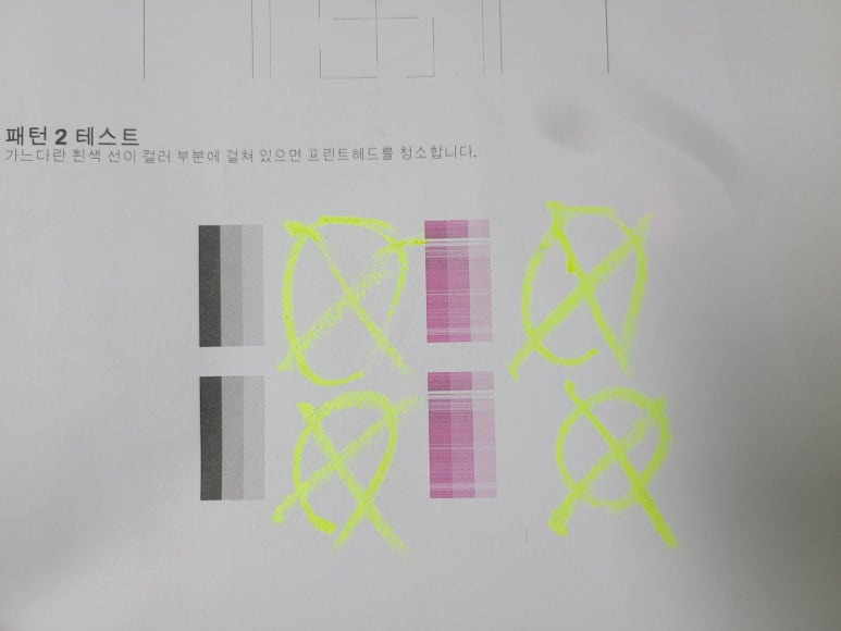 2) 매일 체크하지 않으면 노즐이 미세하게 막히면 헤드 청소를 해야 하는데 헤드청소시 이때, 잉크가 정말 많이 사용됩니다. 잉크 낭비까지 생각한다면 평소 출력해 체킹하는 게 좋습니다.(고지혈/동맥경화시 의료비가 듭니다)