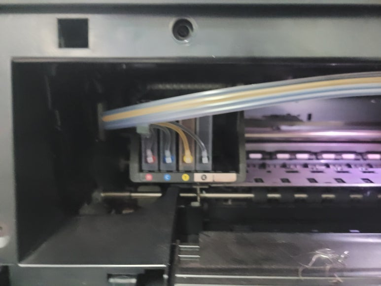 출력불량 및 잉크 카트리지 문제로 빠른 전체 점검 필요 이유 : 1. 호스 내 잉크 경화로 잉크공급 不 2. 카트리지 부싱 및 패킹 노후로 공기유입으로 잉크공급 不 3. 헤드 內 잉크공간 챔버 터짐 (칩판부 슈팅에어라인 비닐탈락, PCB 오염) 4. 스테이션 펌핑모터 불량으로 인한 잉크공급 不