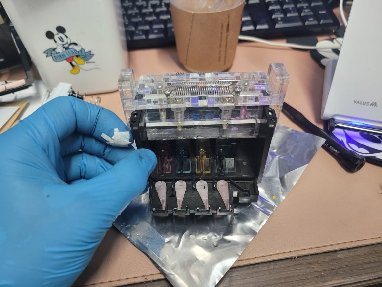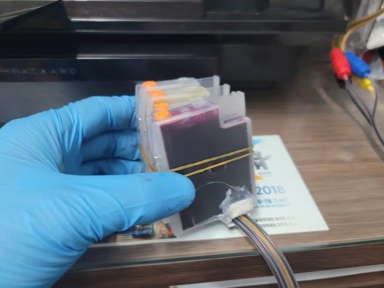 ● 프린터 헤드 챔버 터짐 탄성접착제 도포 및 테이핑