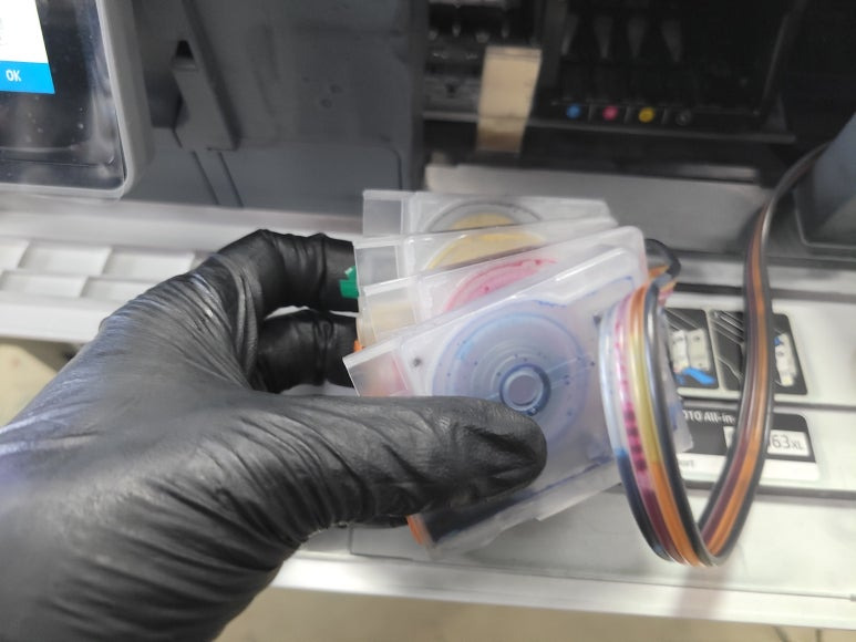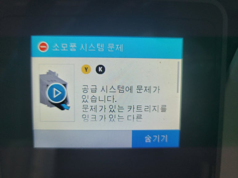 HP OfficeJet Pro 9010 팩스복합기 무한잉크 장치는 소모품 시스템 문제 및 공급 시스템 문제는 전면 커버를 열었다 닫았다 3회 진행하면 카트리지 확인 후 정상 작동됩니다.