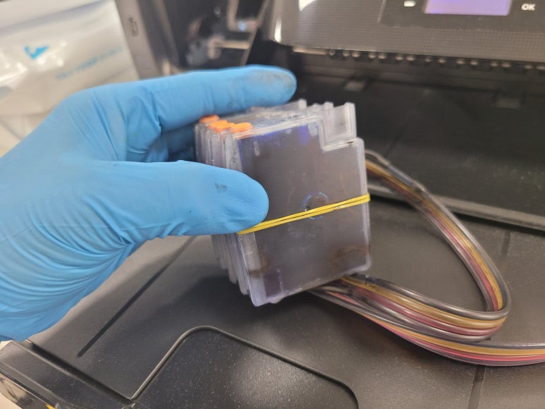 ● 카트리지 석션 및 잉크 차징, 부싱 패킹 공기유입 점검