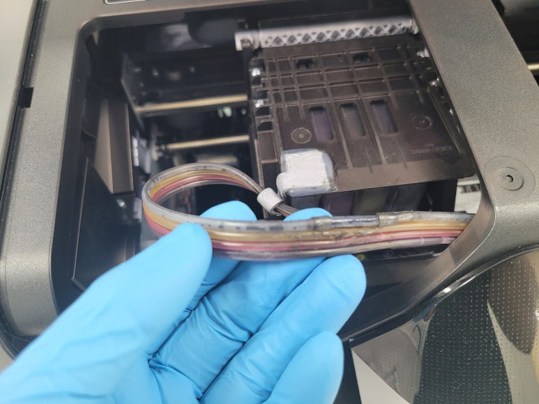 ● 프린터 헤드 챔버 터짐 탄성접착제 도포 및 테이핑