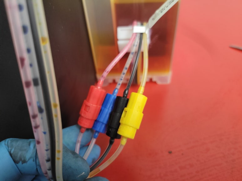 ● 하우징 타공 및 호스 절단, 잉크 퀵차단밸브 장착