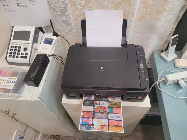 미술학원에서 스캔 복사 문서출력용으로 사용하는 캐논 G3910 복합기 정품 무한잉크인데 출력불량으로 출장수리 요청하여 스케줄 잡아 이동, 출장수리 완료했습니다.