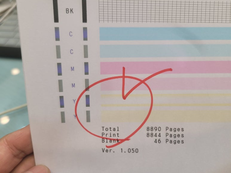 시스템 청소 후 노즐 점검, 칼라 색상 불력불량 확인했습니다. 더이상 시스템청소 및 헤드청소는 절대 하지 않습니다.