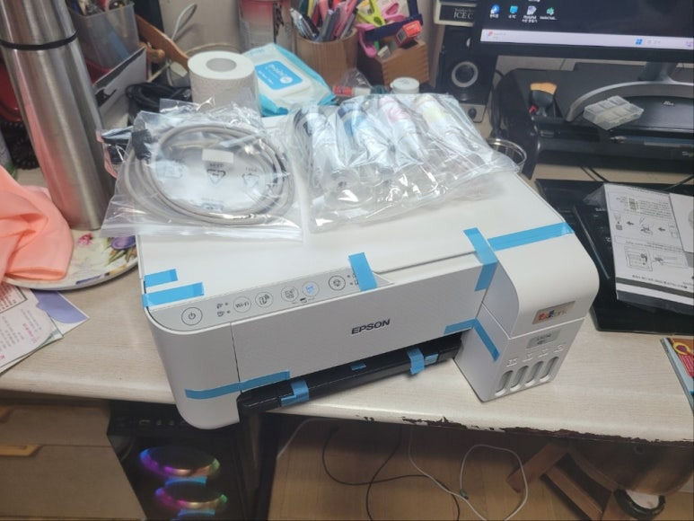 서울시 강서구 화곡동 소재, 스캔 복사 홍보물 및 문서 출력용으로 사용할 컴팩트 하고 관리 수월하고 엡손 EPSON 정품 무한 L3256 복합기 잉크젯 프린터 제품으로 출장 방문 설치하였습니다.