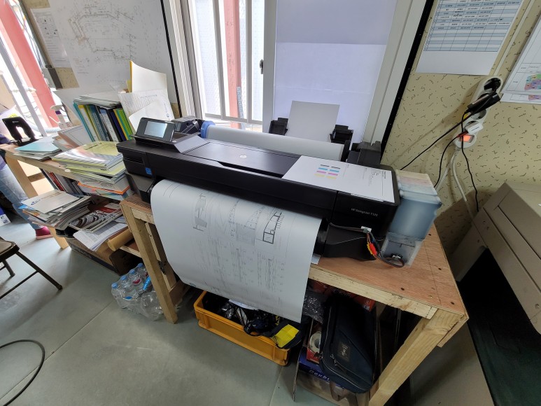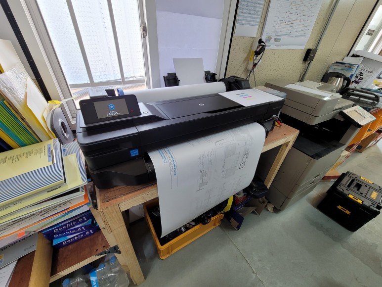 경기도 구리시 갈매동에서 신축 중인 금강펜테리움IX타워 건설현장사무실에서 사용하는 HP 디자인젯 T120 무한잉크 플로터인데 블랙 출력상태가 안 좋아 출장수리 요청하여 스케줄 잡아 이동, 출장 수리 완료했습니다.