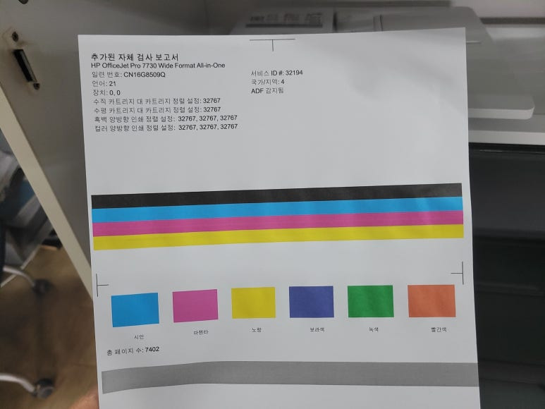 HP OfficeJet Pro 7730 팩스복합기 작업 내용은 아래와 같습니다.