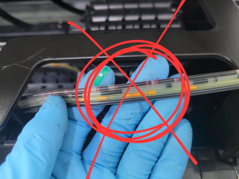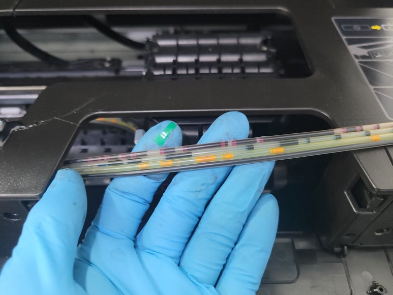 ● 프린터 헤드 칩판부 슈팅에어라인 비닐탈락 수리