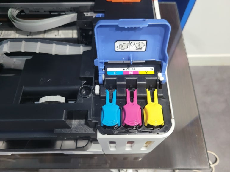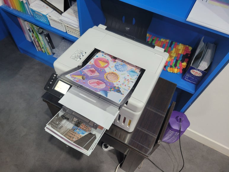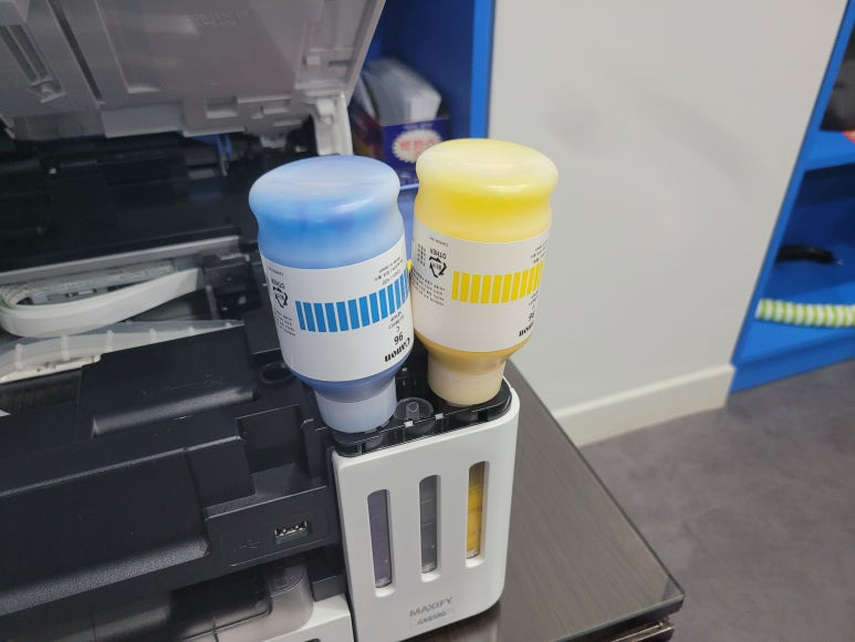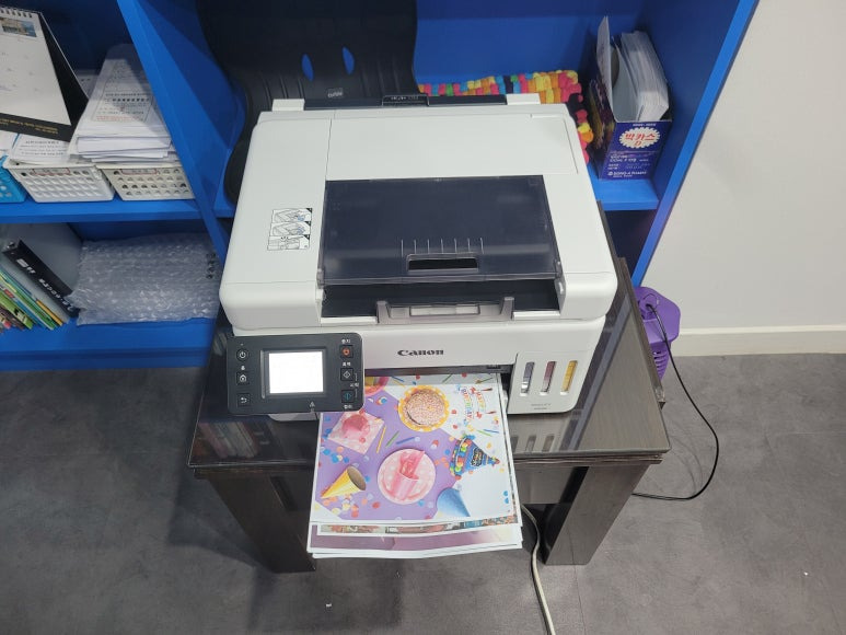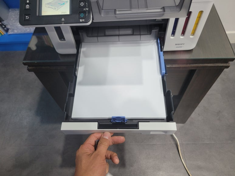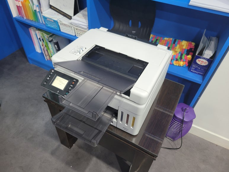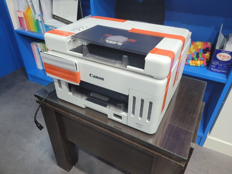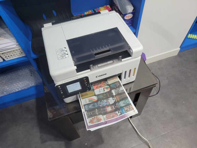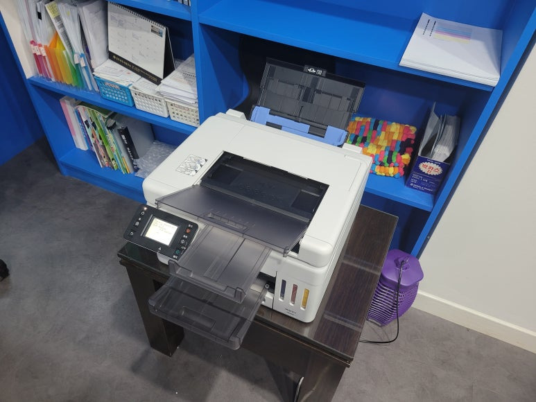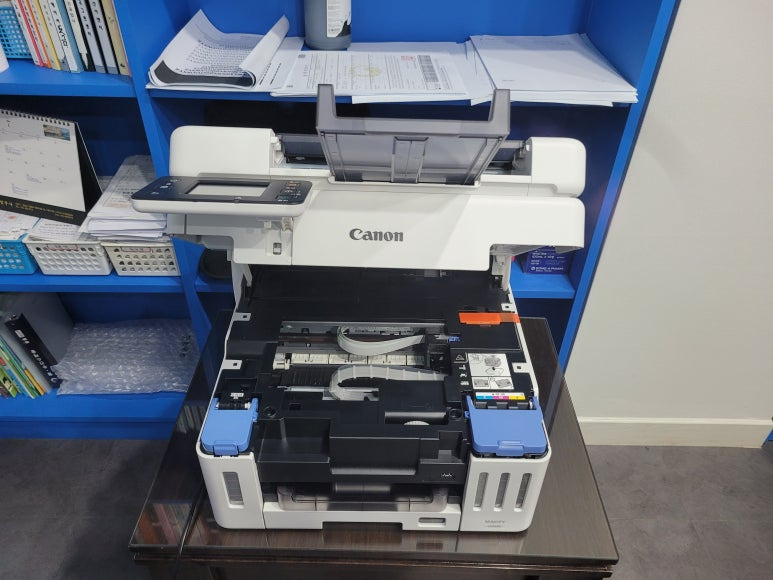 경기도 화성시 소재, 사무실에서 초기에 가장 안정적으로 사용할 수 있는 호환잉크로 설치 요청하여 스케줄 잡아 이동, 출장설치 완료했습니다. 캐논 MAXIFY GX6590 무한잉크 복합기 전면 ADF(자동문서공급장치)가 배치되어 있어 협소한 곳에 설치도 가능합니다.