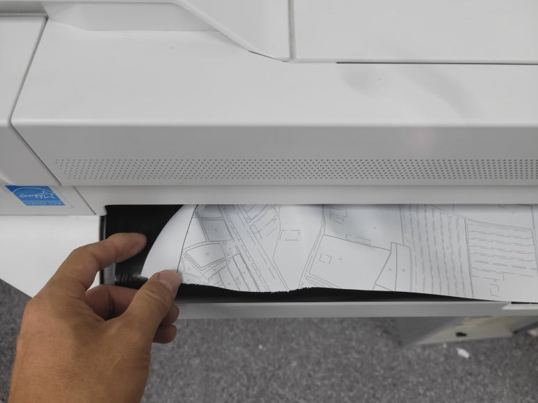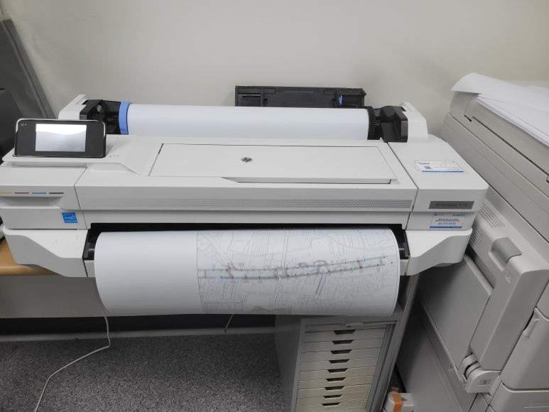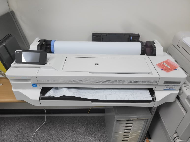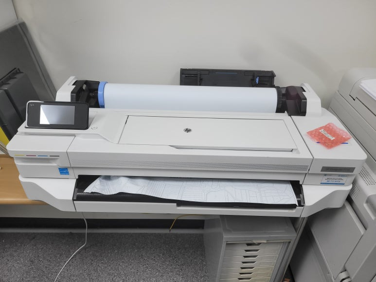경기 포천시 소흘읍 소재, 전기관련 현장사무실에서 사용하는 HP DesignJet T130 플로터인테 칼날 커팅 불량으로 용지걸림 발생하여 출장수리 요청하여 스케줄 잡아 이동, 출장방문수리 완료했습니다.