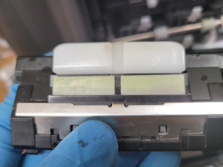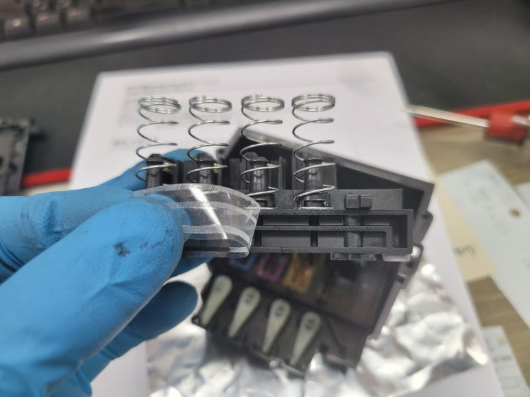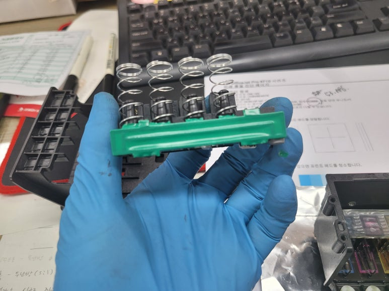 ● 프린터 헤드 챔버 터짐 탄성접착제 도포 및 테이핑
