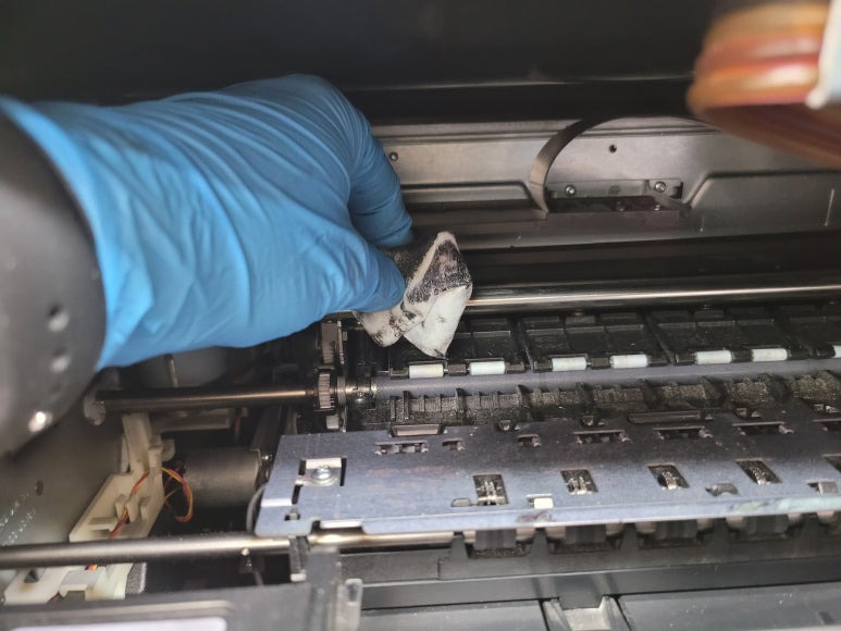 ● 프린터 헤드 클램프 부착 및 핫멜트 보강, 호스 재정리 장착