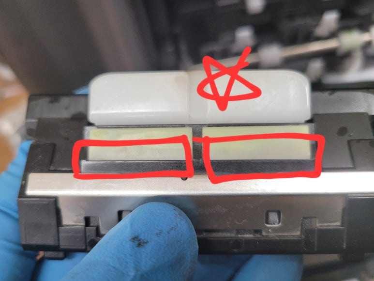 ● 프린터 헤드 칩판부 슈팅에어라인 비닐탈락 수리