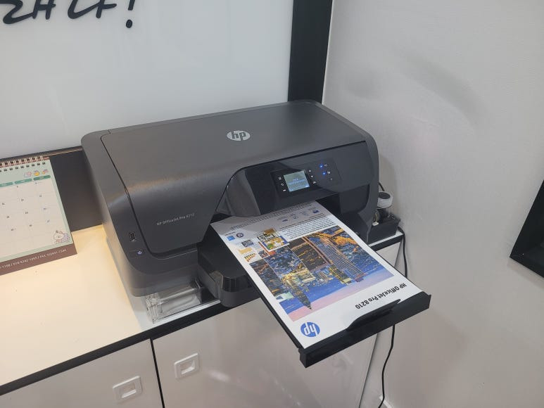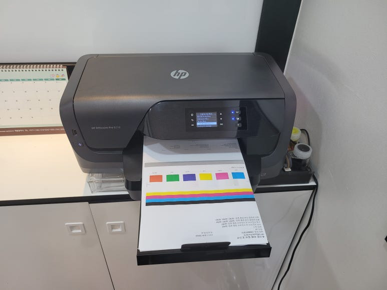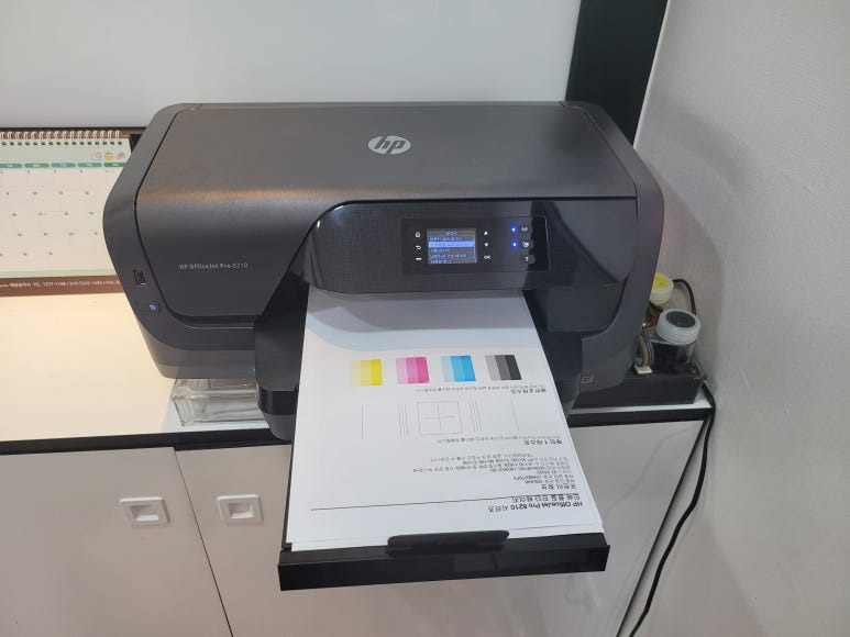서울 강서구 마곡 아파트 상가내 학원 사무실에 HP 8210 무한잉크 프린터, 칩없이 구동하는 No Chip 장비 임대 설치했습니다. 1년 약정(자동연장), 월 무제한한 출력기준 월 44,000원, CMS 계좌/카드 계약 설치완료 했습니다.