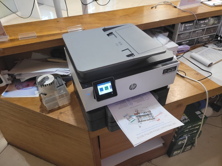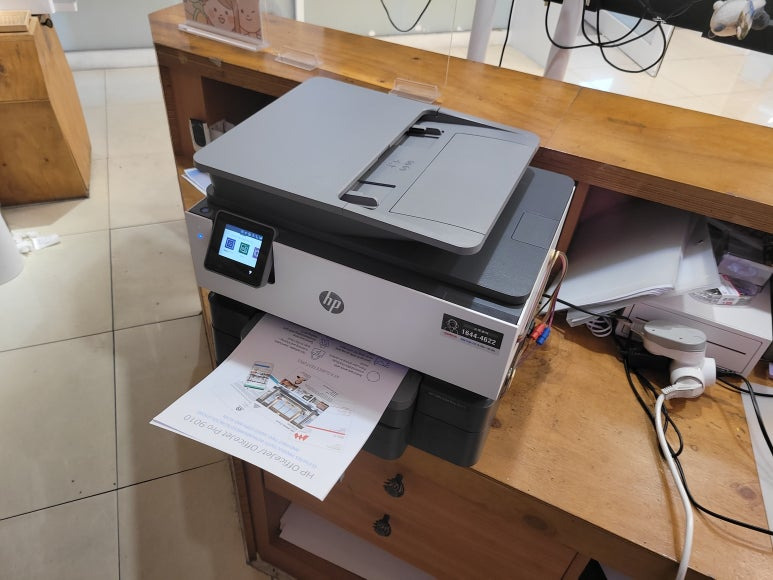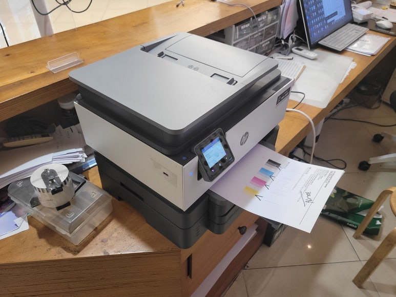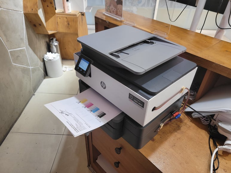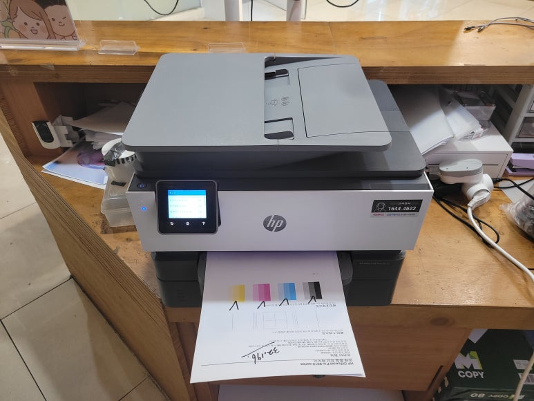 경기도 고양시 덕양구 학원 데스크에 사용할 문서 및 팩스,스캔, 복사 출력용으로사용할 HP 9010 팩스복합기 무한잉크 임대 설치 요청으로 1년 약정 자동연장 , 월 1,000장 출력기준 월 33,000원, CMS 자동 계좌이체 계약으로 HP 9010 무한잉크, 임대형 및 기업형, B2B용 (보험사, 군부대, 학교, 학원, 부동산, 핸드폰매장, 교육사 등등)으로 사용되는 칩없이 구동하는 기업형 No Chip (Chipless Solution) 무한잉크 팩스복합기 장비를 스케줄 맞춰 출장설치 완료 했습니다.