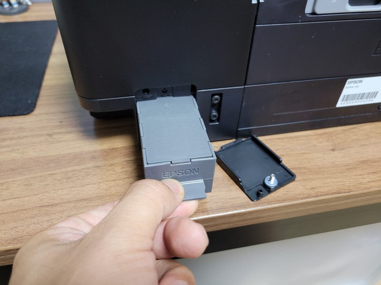 엡손 정품 프린터은 잉크 폐잉크가 폐잉크통에 잉크가 차면 넘치기 전에 교체해야 합니다. 아래와 같이 각 모델별로 유지보수 상자 (유지보수박스)가 있으면 교체 메세지가 나오면 교체해야 합니다.