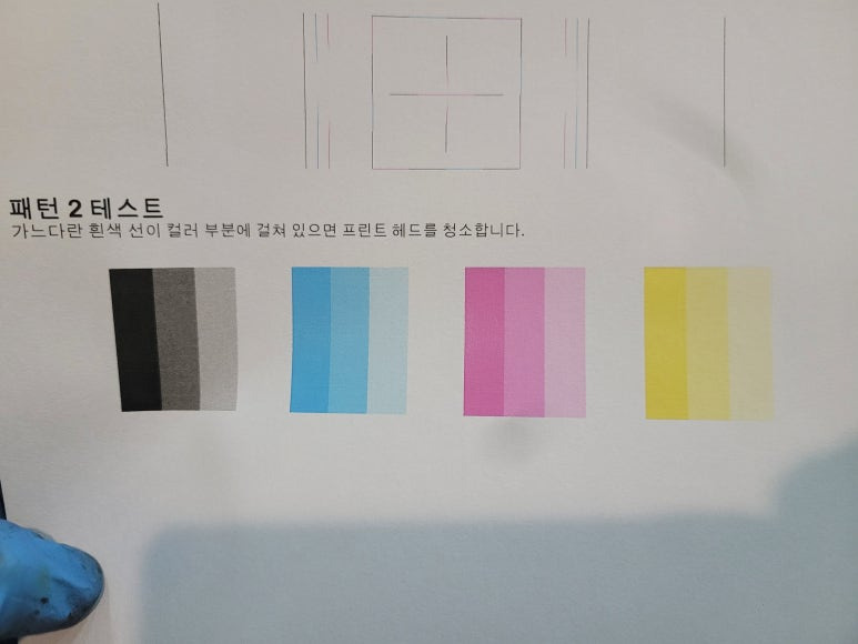 ⚠ 이상 시에만, 액정에서 설정 ➡ 유지 및 보수 ➡ 헤드청소 3단계 1회만 진행 (개선없다면 수리요청)