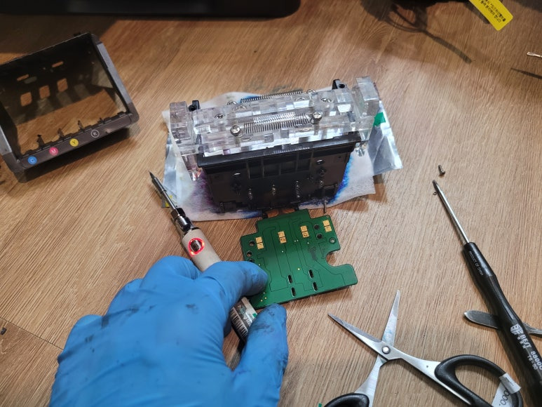 ● 프린터 헤드 PCB 크리닝 및 납땜쇼팅