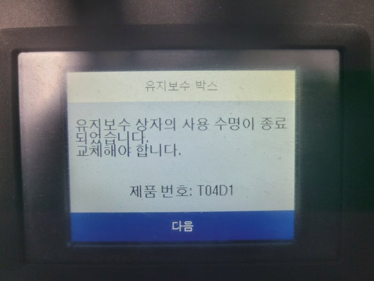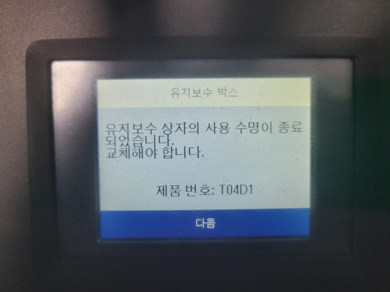 경기도 화성시 봉담읍 소재, 기계관련 업체에서 기계도면 출력 및 팩스, 스캔, 복사용으로 사용하는 엡손 L14150 팩스복합기인데 유지보수상자 사용 수명이 종료되었습니다. 오류 발생으로 출장수리 요청하여 스케줄 잡아 이동했습니다.