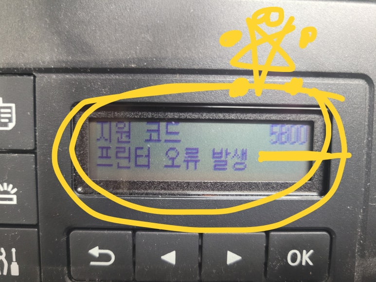 ● 지원코드 5B00 프린터 오류 발생 : 폐잉크 패드 수명 소모됨