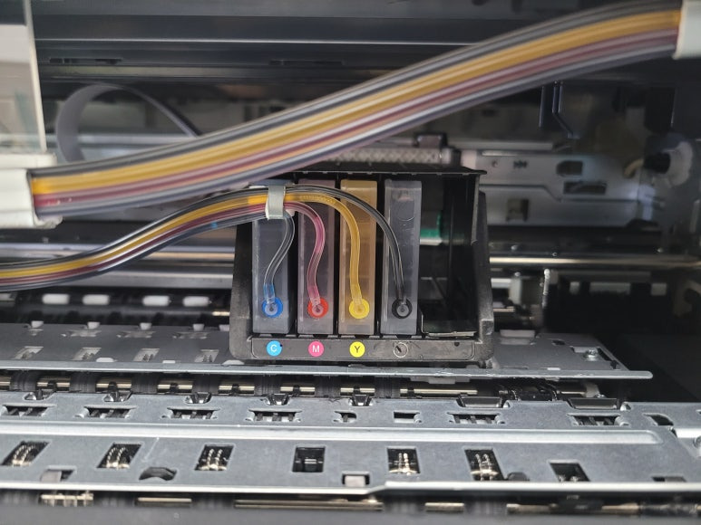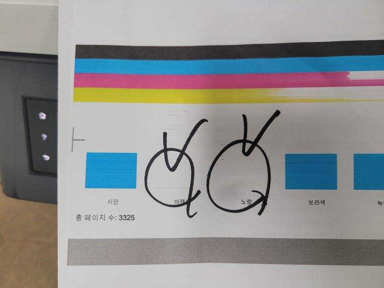 cf. 잦은 헤드 청소는 잉크손실, 내부오염, 헤드 노후화 및 칩판부 슈팅에어라인 비닐탈락, 챔버**터짐, 노즐 훼손, 헤드 챔버 내부 크랙 등 영향을 줍니다. 꾸준한 주기적인 4색 출력 관리가 필요합니다. 열분사 방식으로 잉크가 빠진 상태에서 사용시 헤드 노즐이 타서 망가질 수 있으니 사용자재 바랍니다.