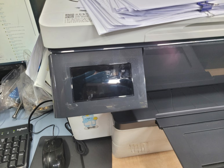 경기도 용인시 처인구 이동읍 소재, 사무실에서 스캔, 복사, 팩스 및 문서출력용으로 사용중인 HP 오피스젯 프로 7740 무한잉크 팩스복합기인데 액정 화면 불량 및 출력 불량 등으로 출장수리 요청하여 스케줄 잡아 이동, 출장수리 완료했습니다.